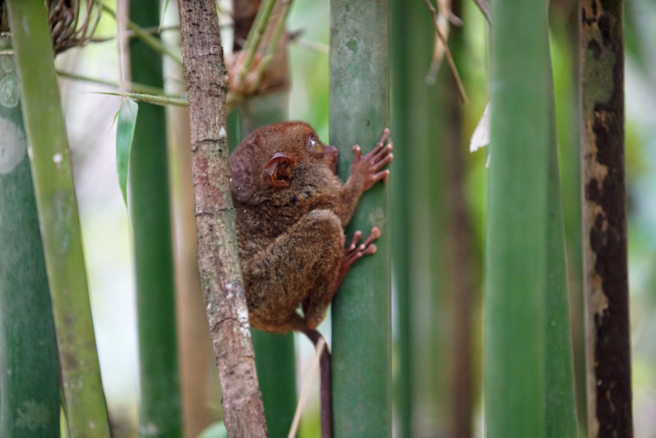 The Tarsier is very shy and for as little disturbance as possible you are just allowed to go with a guide into the forest, besides that the also know where to find them. Because of their size, you probably would miss them anyway. A Tarsier is a carnivorous animal, it feeds 100 % on meat – SURPRISE! So the actually are the only primates who absolutely eat NO PLANTS at all! The main threat for the Tarsier population (as most of the times) comes from humans and our greed in terms of extending our habitat. Besides that, there is the hunt, illegal trading and keeping them as pets !!!