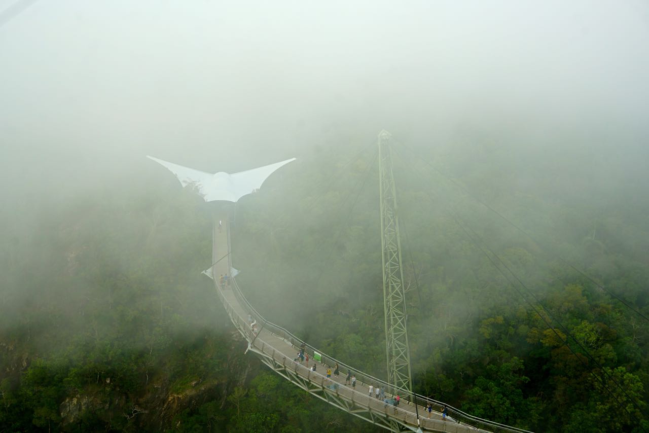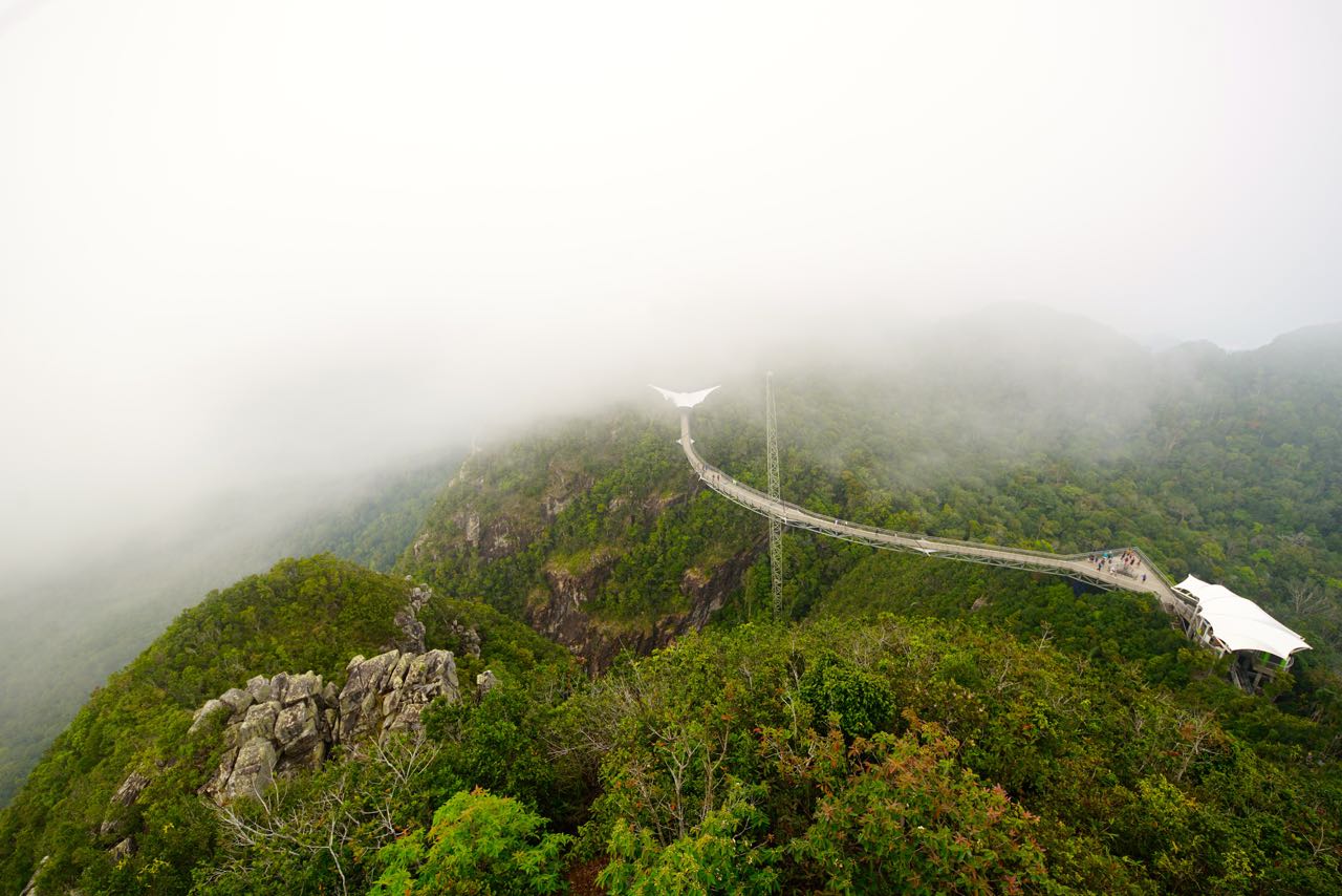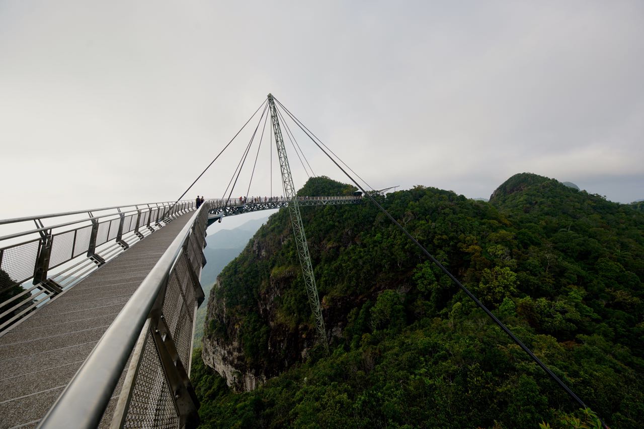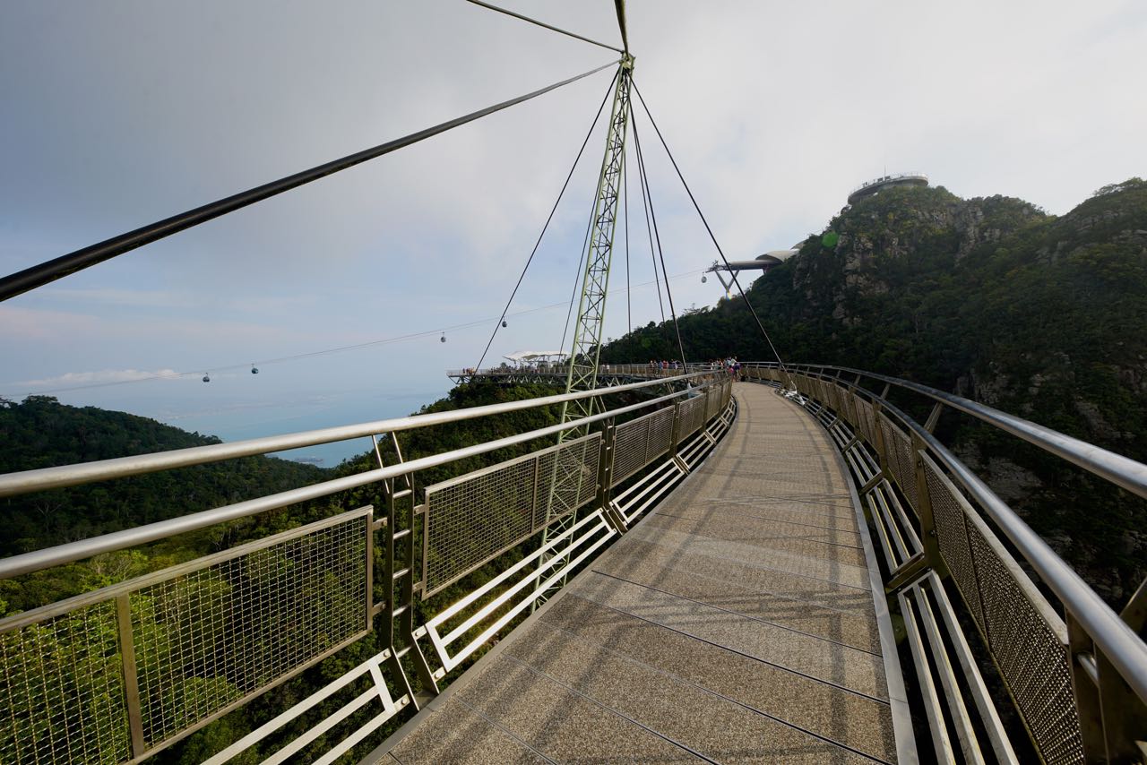So…nun ist’s aber genug von den negativen Aspekten den Langkawi hat ja auch noch eine Vielzahl an Sehenswürdigkeiten zu bieten welche einem den Atem rauben, so z.B. die faszinierende Architektur der Sky Bridge im Nordwesten der Insel. Mit der Seilbahn erreicht man nach einer 15 minütigen Fahrt Langkawis zweithöchsten Berg, den Mount Mat Cincang mit seinen 705 Meter. Die 125 Meter lange Sky Bridge zählt zu den längsten (gebogenen) Fußgänger-Brücken der Welt und wird 100 Meter über der Schlucht von nur einem einzigen, 82 Meter hohen Mast getragen. Von dieser spektakulären Brücke hat man auch einen wunderbaren Blick auf die Andamanensee