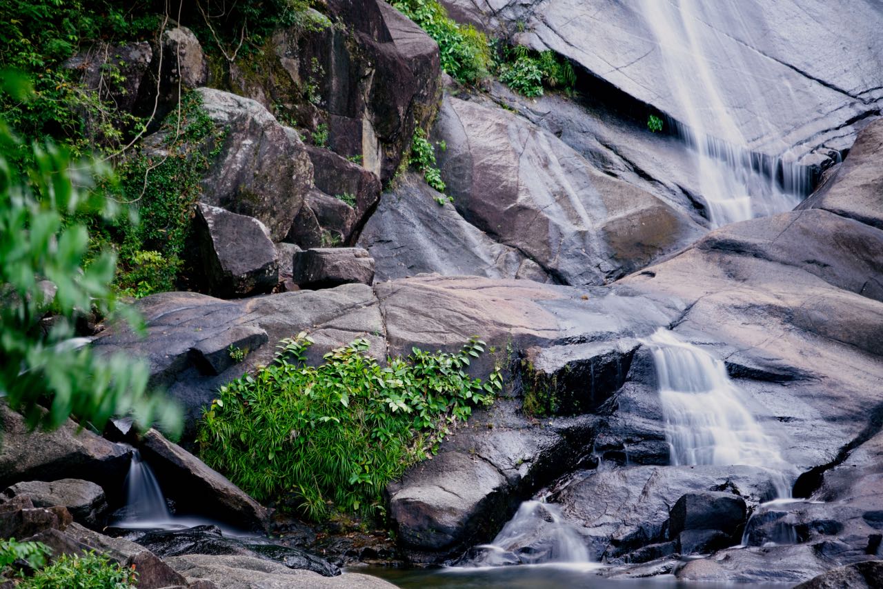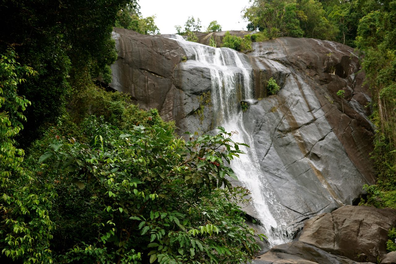 Mein Lieblingsplätzchen in diesem Gebiet liegt definitiv in den oberen Bereichen des Telaga Tujuh Waterfall . Die Felsformationen laden förmlich zum Verweilen ein und mit einem Buch im (Kamera) Rucksack lässt es sich an den heißen Tagen stundenlang im schattenspendenden Dschungel aushalten. Die Aussicht von der (orangenen) Brücke, über den tiefgrünen Dschungel reichen bis zum Meer hin und sind grandios. Meine zweieinhalb Wochen in Malaysia sind vorüber und es wird bei mir noch eine Weile dauern bis ich die vielfältigen Eindrücke realisiert und verarbeitet habe. Und während sich jetzt die meisten Touristen an den Stränden befinden genieße ich noch meine letzten Stunden auf Langkawi mit ‚Planschen‘ in den erfrischenden Süßwasser Pools der Telaga Tujuh Wasserfälle.