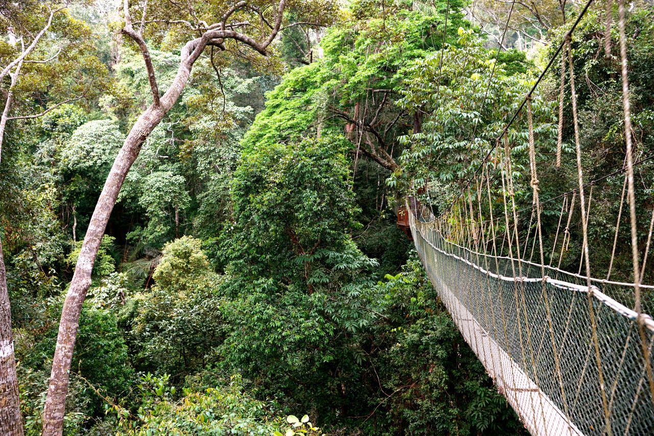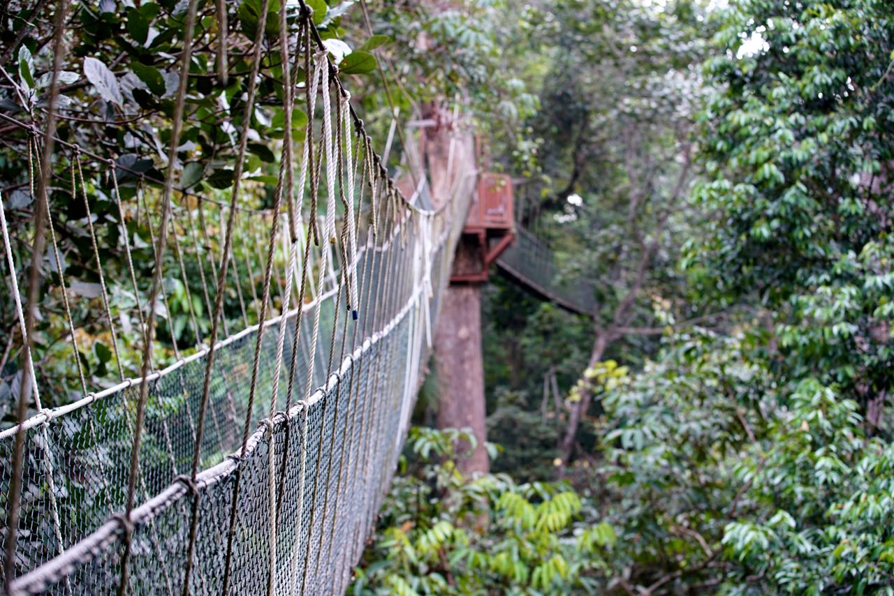 Der Canopy Walk ist täglich geöffnet und kann von 9 bis 12 Uhr begangen werden (die angegebenen Zeiten variieren !) und der Eintritt ist 5 MYR (also ca. 1.- mit Stand Februar 2017). Wenn man um 09:00 oder gegen 11:30 vor Ort ist hat meine eine gute Chance die Hängebrücken zumindest ein paar Minuten für sich alleine zu haben. Der Weg zum Canopy Walk, so wie auch alle anderen Wanderwege, können aber jederzeit und nach eigenem Ermessen besucht bzw. begangen werden. Ich war täglich mehrmals vor Ort um die verschiedenen Lichtverhältnisse zum Fotografieren zu nützen und Begegnungen mit anderen Besuchern waren rar. Alles ist gut ausgeschildert, so auch die Aussichtstürme auf denen man mit Spannung auf die Lichtungen und Baumkronen starrt in der Hoffnung Vögel, Affen, Wildschweine, Rehe etc. bestaunen zu können. Ich hatte wenige Sichtungen aber die waren spannend denn schließlich kommt man sich immer noch als kleiner Entdecker vor wenn man unter tags und auch nachts durch den Dschungel streift.