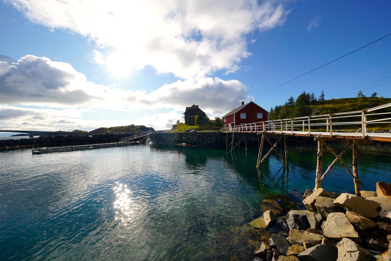 Am nächsten Morgen tranken wir Kaffee, starrten auf den Himmel und waren immer noch völlig benommen von jenen unglaublich spektakulären Nordlichtern des Vorabends. Unsere Reise ging weiter, die Akkus für die Kameras waren geladen und wir in Vorfreude auf das Dorf Henningsvær. Nach meiner Recherche war es genau mein Ort. Die Bilder, Berichte, Outdoor Möglichkeiten und Geschichten zogen mich einfach magisch an und die Distanzen sind, wie fast überall auf den Lofoten, nicht allzu weit: von Kabelvåg nach Henningsvær satte 20 km. Henningsvær, das bekannteste Fischerdorf der Lofoten, auch „Venedig des Nordens“ genannt, ist im Winter Zentrum für die größte Dorschfischerei weltweit. Während der Lofot-Fischerei geht es im Hafen hoch her und das ca. 500 Einwohner Dorf hat sein ursprüngliches Milieu mit blankgescheuerten Seehäusern und dichtstehenden Fischerhütten noch bewahrt.