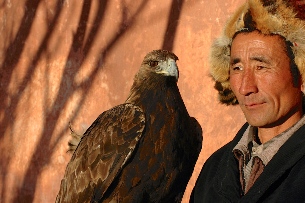 Die Augen des Adlers hatten mich erfasst, fixierten unablässig und reagierten auf jede noch so kleine Bewegung von mir. Dieser mächtige Adler saß, gestützt durch eine stabilisierende Holzschiene, auf meiner linken Hand. Mit der rechten führte ich die Zügel des mongolischen Steppenpferdes und so ritten wir tief in den Westen der Mongolei nach Ölgii im Altay.