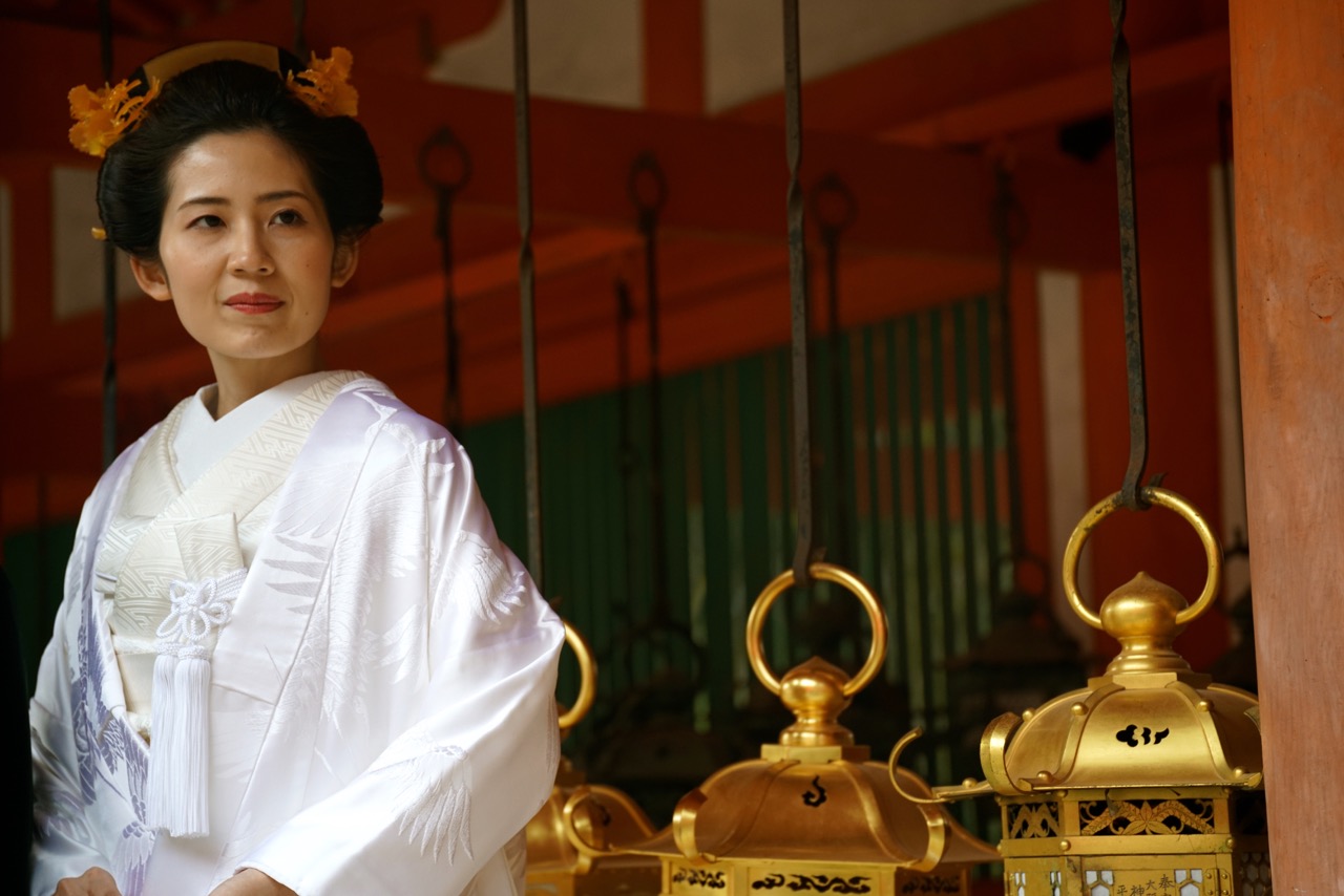 Ich weiß… ich weiß… ich bin ein wenig abgewichen. Also… es ist dieser trübe feuchte Sonntag und ich bin schon ein paar Stunden unterwegs, ständig die Umkehr zur Unterkunft im Kopf, da ich noch keine einziges gutes Bild machen konnte. Doch dann, bei einem dieser vielen kleineren Tempel, entdeckte ich eine kleine Gruppe von Hochzeitsgästen. Nichts wie hin und bei allem Respekt musste ich (ein wenig) respektlos sein, sonst wäre nichts aus den Fotos geworden. Nachdem ich körpersprachlich um Erlaubnis gefragt hatte, es keine Einsprüche gab und die Zeremonie schon dem Ende zu ging, konnte ich die Hochzeit begleiten und so kam es zu den nun folgenden Bildern.