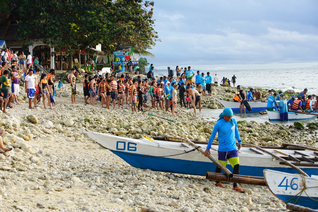 Eine Begegnung mit Walhaien haftet wie ein süßer Kuss unvergesslich in unserer Erinnerung und genauso verzaubernd und lebendig wie in jenem Moment taucht er immer wieder mal auf. Nach mehreren Walhai-Sichtungen bei Tauchgängen in Belize bin ich dieses Mal in Oslob einem kleinen Ort im Südwesten von Cebu auf den Philippinen. Oslob gehört zu den wenigen Orten weltweit wo man 2008 begonnen hat Walhai anzufüttern um sie für touristische Zwecke zu nützen. Seit 2011 läuft das Geschäft: Whale Shark Watching bzw. Schnorcheln und Tauchen mit Walhaien. Der Andrang ist seit dem stetig und exponentiell gewachsen, die diesbezügliche Infrastruktur hinkt aber weit hinterher und das bei einer durchschnittlichen Anzahl von bis zu 1500 Gästen täglich ! Die Saison lässt sich aufgrund des Wetters zudem noch auf gute 7 Monate ausdehnen und in dieser Zeit werden Hunderttausende Touristen z.B. in Bussen direkt vom Flughafen oder Cebu Stadt zum geschehen gekarrt. Da fließen Millionen…. nicht Pesos sondern Euro !