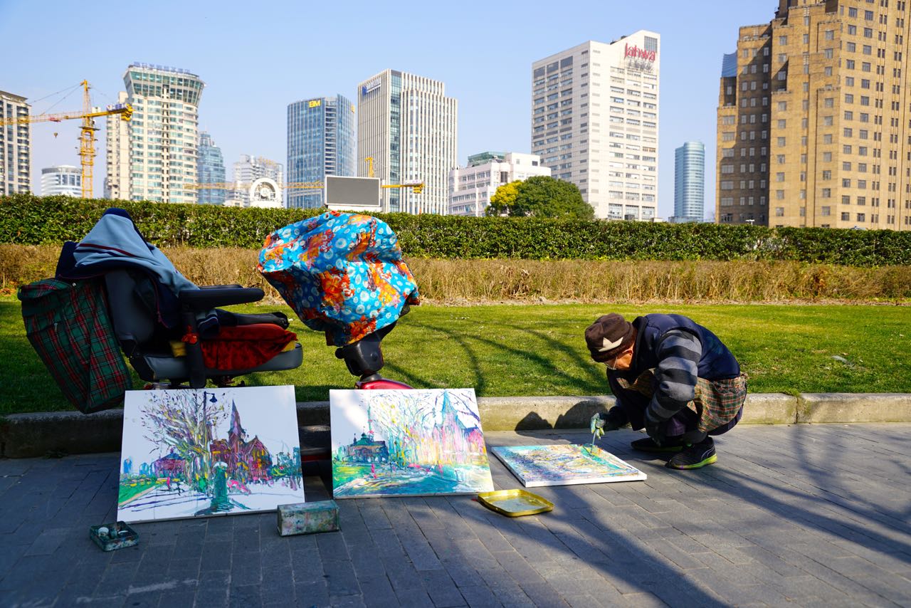 Ich fühlte mich wie ein Nano Partikel (zur Anschauung: ein Nano Partikel hat die Größe eines Fussballs im Vergleich zur Erde) in dieser Metropole mit knapp 25 Millionen Menschen. Einerseits total fasziniert von der Eigendynamik dieser niemals schlafenden und dauerhaft pulsierenden Stadt und anderseits verloren in dieser mir unbekannten Metropole. Mein Unterkunft , welche ich wieder mal über Airbnb gebucht hatte, befand sich in Huangpu , zwei Gehminuten von der Metro Station entfernt und vom Zimmer hatte ich einen genialen Blick auf den Fluss. Die Örtlichkeit der Wohnung war perfekt, ihr Stil typisch. Schon der klapprige Aufzug mit Eisengittern war furchterregend und in den Gängen konnte man das ganze Spektrum der chinesischen Küche riechen (und größtenteils auch sehen). Shanghai ist eine Stadt der Gegensätze wobei Gegensätze hier als Spiegel des Wandels zu verstehen sind. In ihr ‚gefangen‘ fühlt man das Pulsieren und wird selbst zum Herzschlag jener Dynamik.