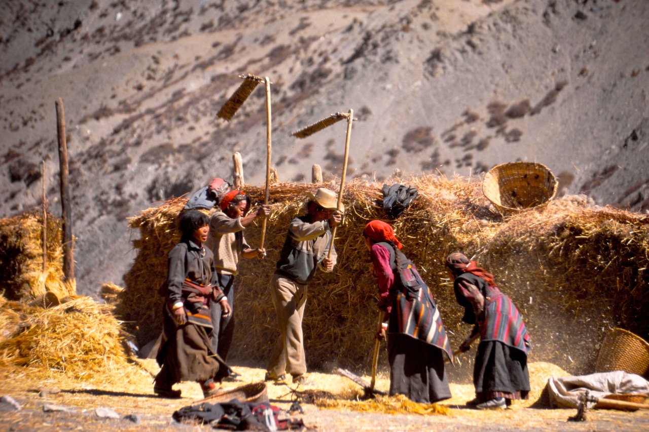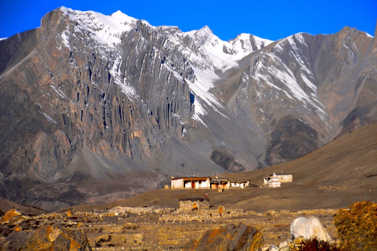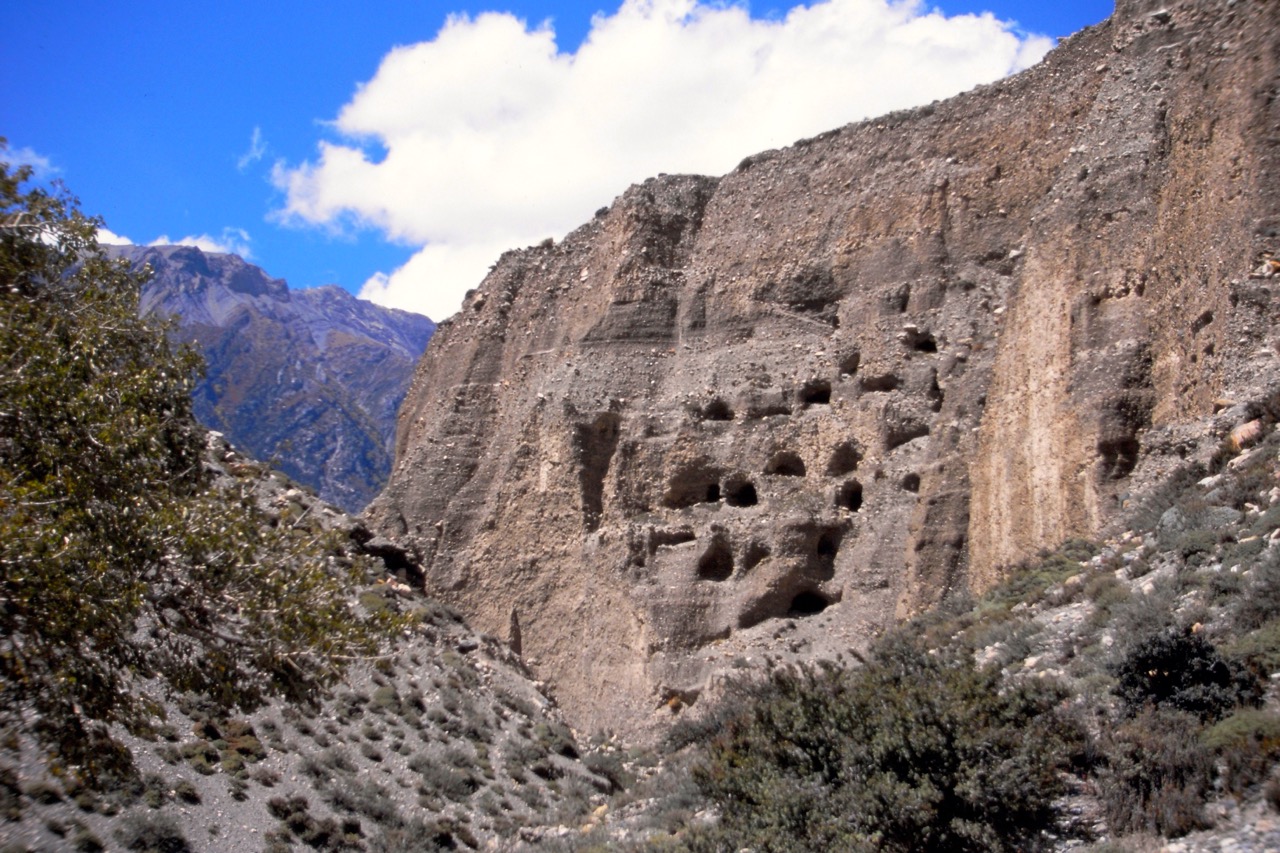 A short trek of about 3 hours took us down to Barbung Khola and across Rupagad to Dunai (2150 m), capital of the Dolpo district. We went along the Barbung Khola river to Tarakot (2500 m) and put up camp above the old village fortifications.