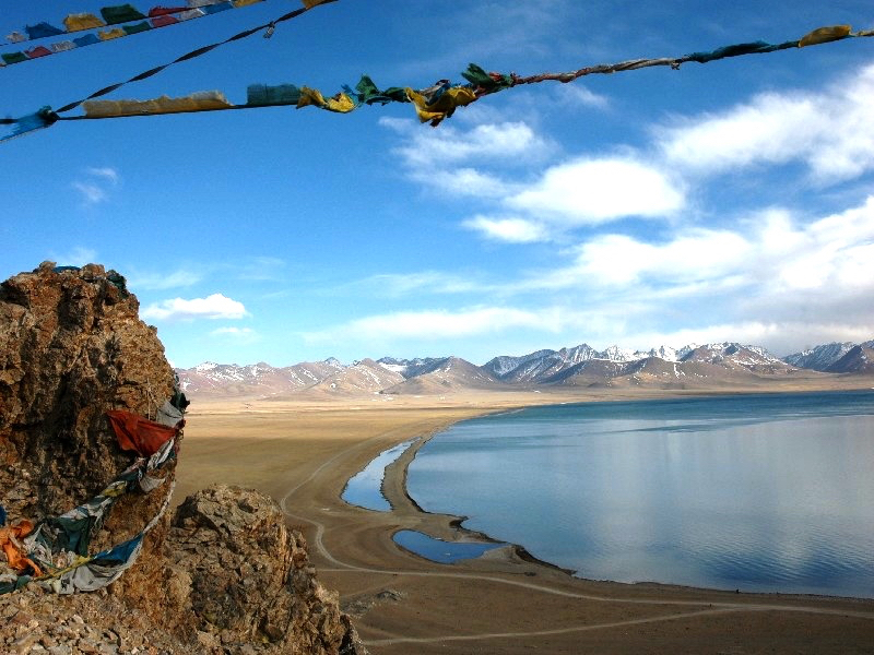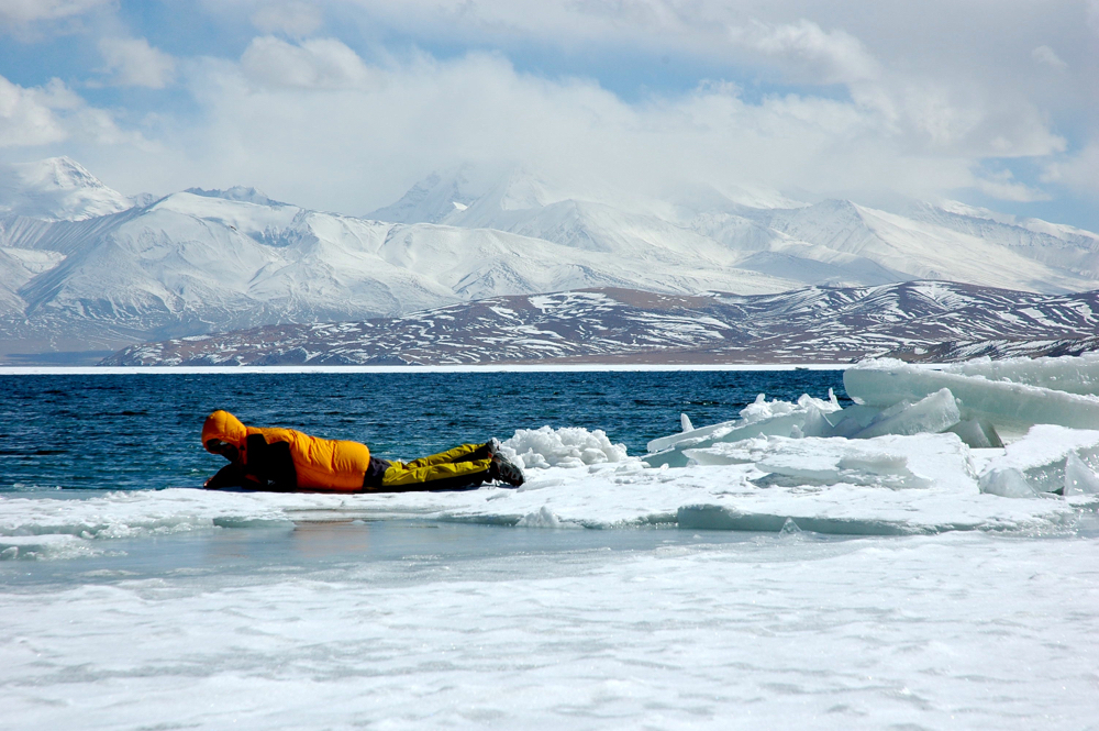 It took two whole days until they caved in and allowed us, with many a head shake, to cross the bridge to Tibet. Of course, all our equipment was examined in great detail to make sure that no original Tibetan flag or picture of the Dalai Lama was hidden in it. Due to the exceptionally small amount of snow for the season, our liaison managed to contact our drivers in Tibet, who was to pick us up at the impressive lakes Manasarovar and Rakshastal.