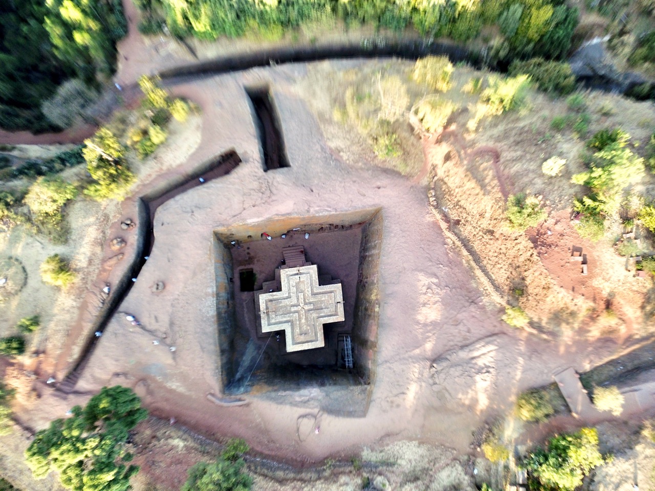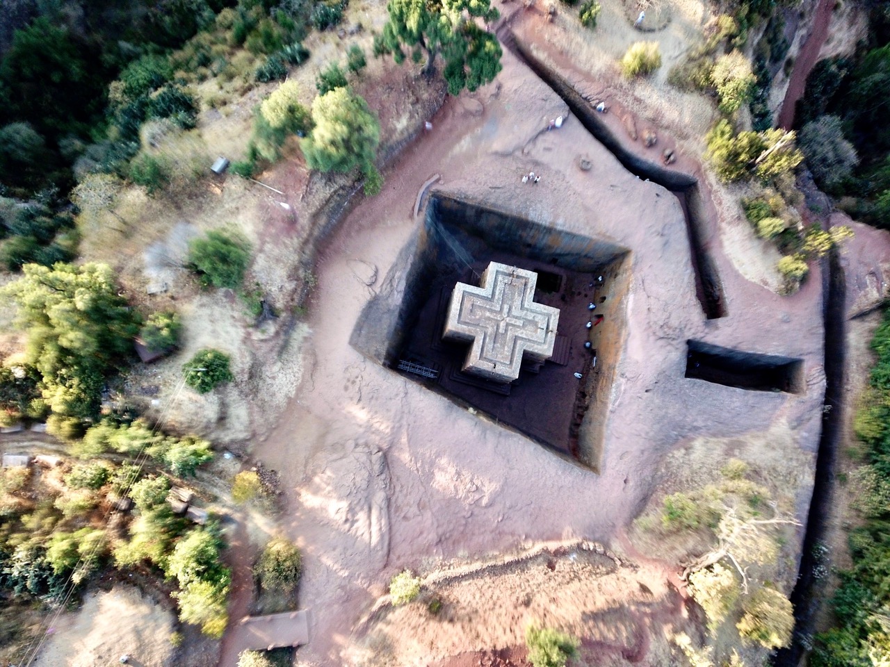 Lalibela is located in the Amhara Region, at roughly 2,500 meters above sea level. The Rock-Hewn Churches were declared a UNESCO World Heritage Site in 1978. Though the dating of the churches is not well established, most are thought to have been built during the reign of Lalibela, namely during the 12th and 13th centuries. The dimensions are hard to grasp so here are some aerial pics to give you a different perspective.