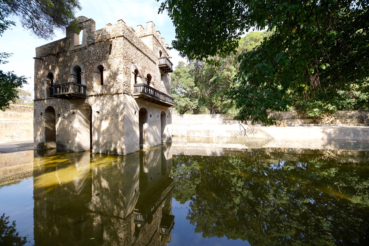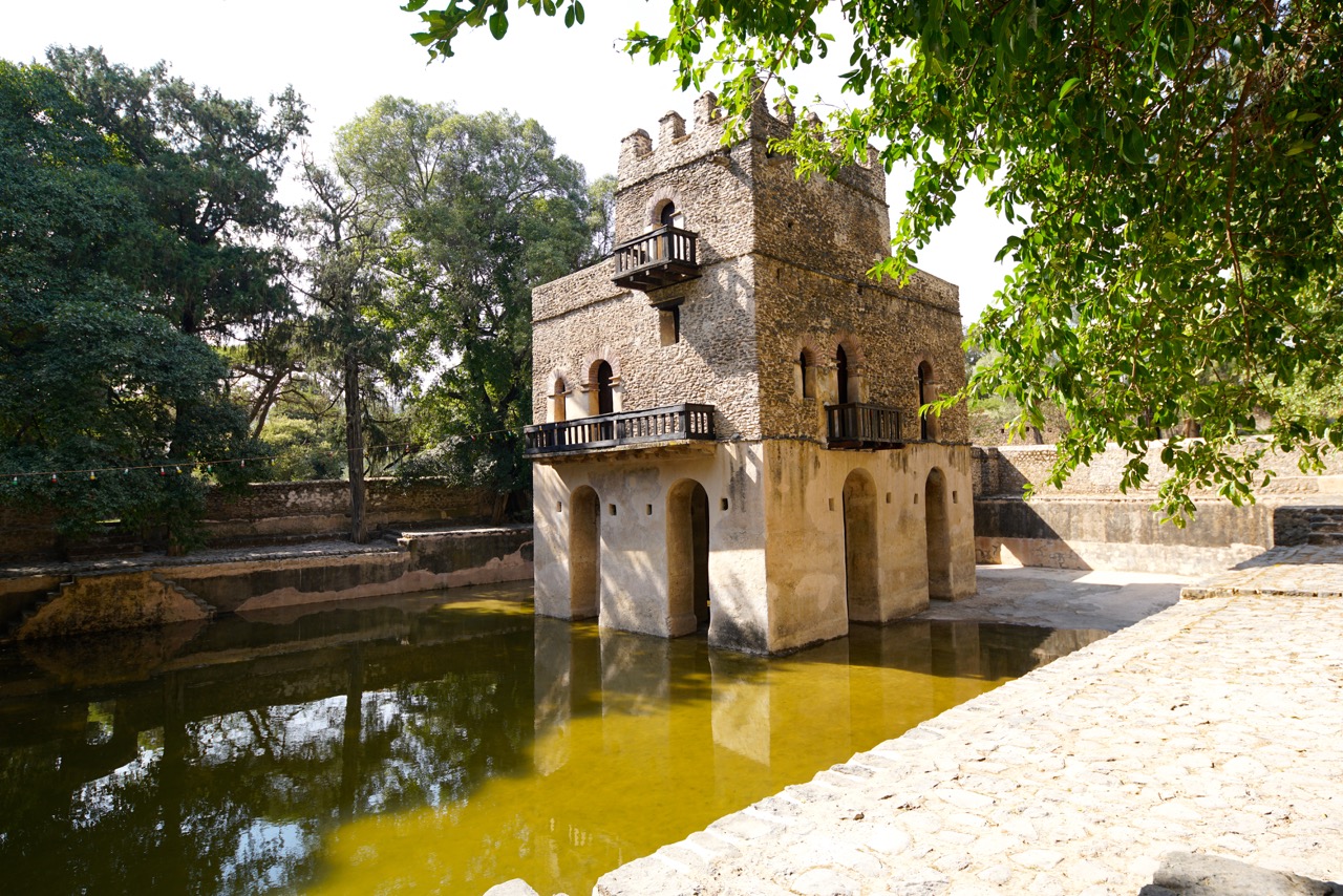 Around 2km northwest of the piazza lies Fasiladas’ Bath, which has been attributed to both Fasiladas and Iyasu I. The large rectangular pool is overlooked by a charming building, thought by some to be a vacation home. It’s a beautiful and peaceful spot. Although the complex was used for swimming, it was likely to have been constructed for religious celebrations, the likes of which still go on today. Once a year, it’s filled with water for the Timkat celebration. After the water is blessed by the bishop, the pool becomes a riot of splashing water, shouts and laughter as a crowd of hundreds jumps in. The ceremony replicates Christ’s baptism in the Jordan River and is seen as an important renewal of faith.