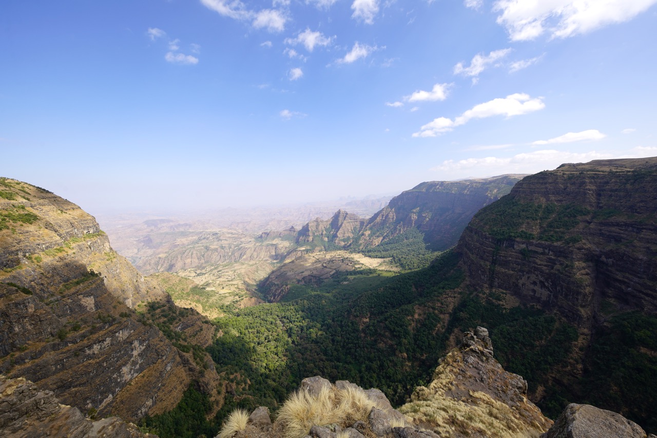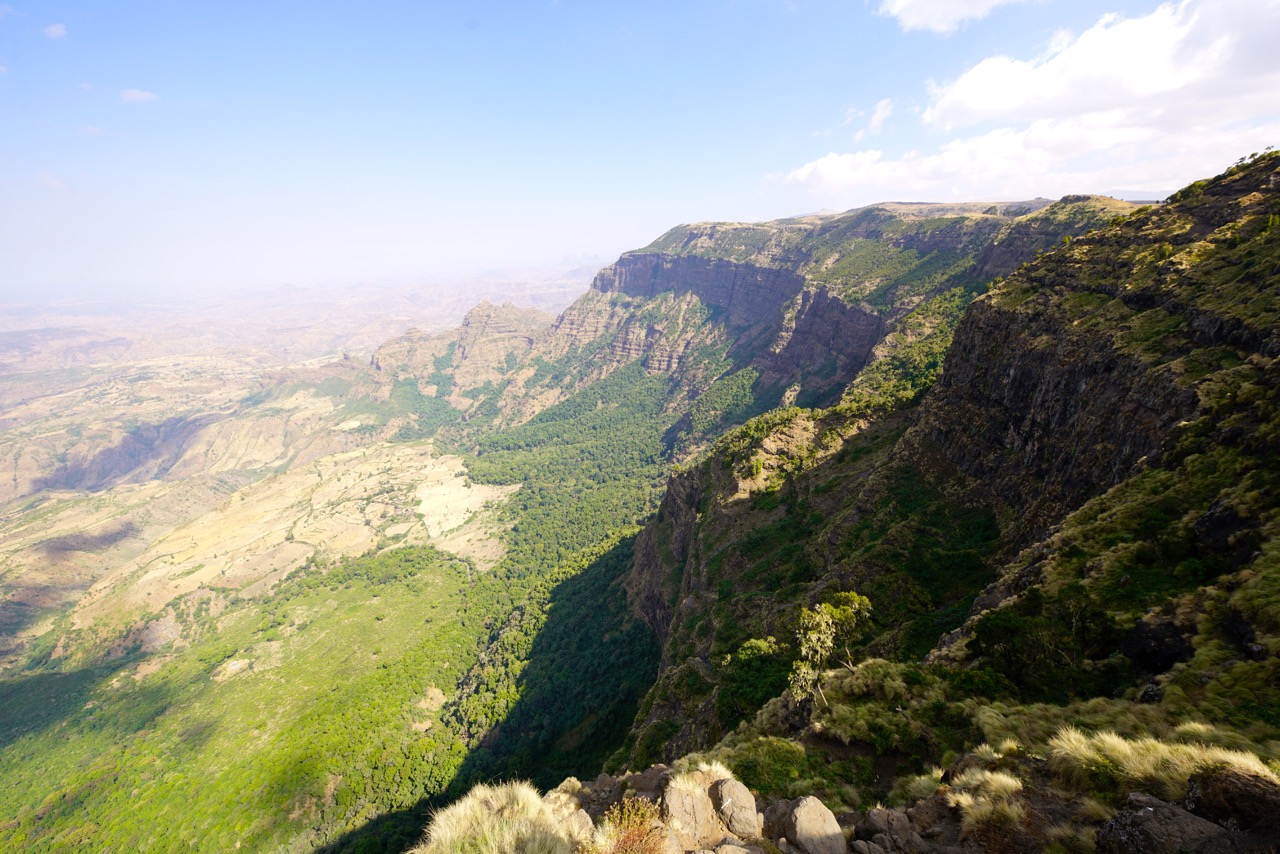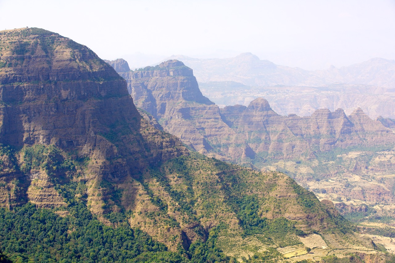 Since I am outdoor rooted you can imagine that, after spending two days of historical sightseeing, I got, itchy-feet’! It was about time to get out there again and so I went next morning to Simien Mountains. In Amharic, ‘simien’ means ‘north’. Six hundred million years ago, the mountains were an enormous volcanic mass; rain and ice have carved deep fissures into them and rivers have continued the work of erosion, creating one of the most significant sculptures on the planet: peaks, canyons, gorges, clefts and pointed amethyst-colored pinnacles like obelisks. The Simien Mountains of Ethiopia offer superb wilderness trekking with stunning scenery, enormous cliffs and escarpments and the chance to spot unique wildlife such as the Walia Ibex and Gelada Baboon. Welcome to the spectacular Simien Mountains.