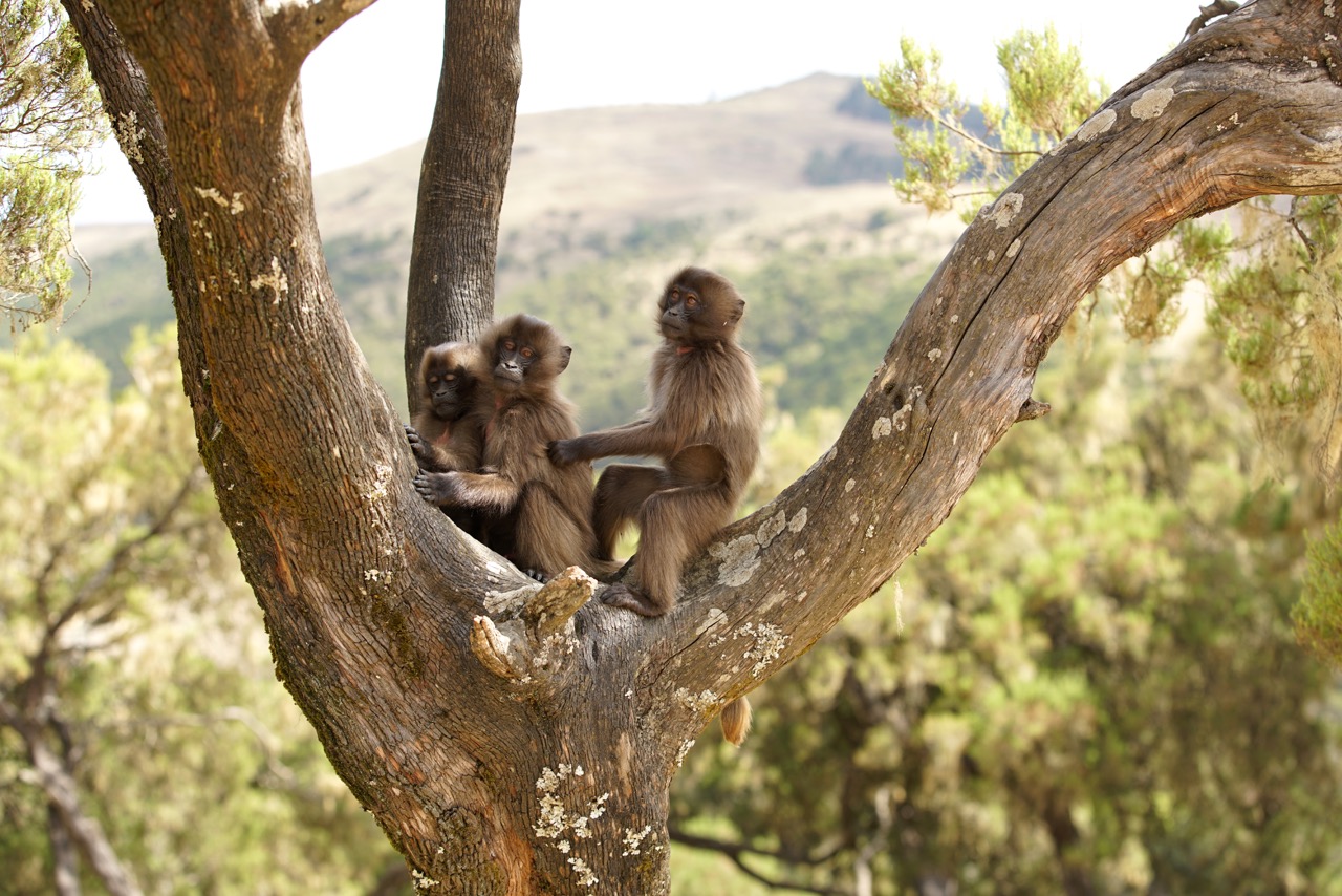 The main attraction of the Simien Mountains National Park is its biosphere: the steep cliffs and the cool climate at the altitude of the Erica tree line (3600 to 4000 m) have created conditions that are appropriate for the survival of an ibex species (Capra ibex wee) endemic to the Simien Mountains. Gentle highland ridges at altitudes above 3600 meters above sea level, covered with grasses, isolated trees, and the bizarre giant Lobelia are found on the high plateau that ends abruptly at 1000- to 2000-m deep escarpments. There are short and multi-day hikes possible, the scenery is just breathtaking and the wildlife encounters are guaranteed! I just loved watching the endemic Gelada Baboons. The gelada sometimes called the bleeding-heart monkey or the gelada baboon is a species of Old World monkey found only in the Ethiopian Highlands.