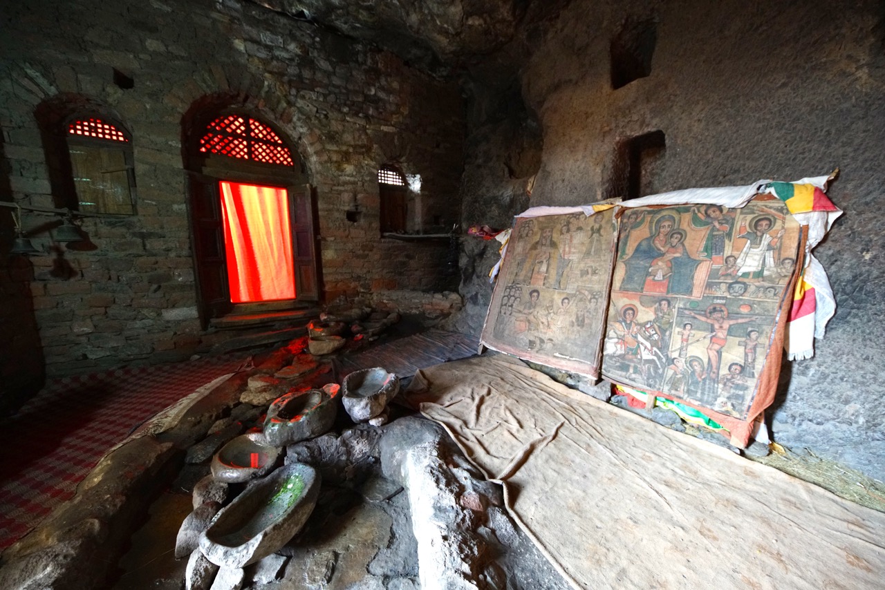 Monastery of Na’akuto La: The location is absolutely fascinating – wide view of the Valley and the surrounding mountain ranges. The monastery is not far away from Lalibela and steps lead down to the monastery which is built under a rock overhang. This place is peacefully settled on an amazing hill, there is a real spiritual atmosphere as well as a beautiful waterfall, the view, nature and village life around.