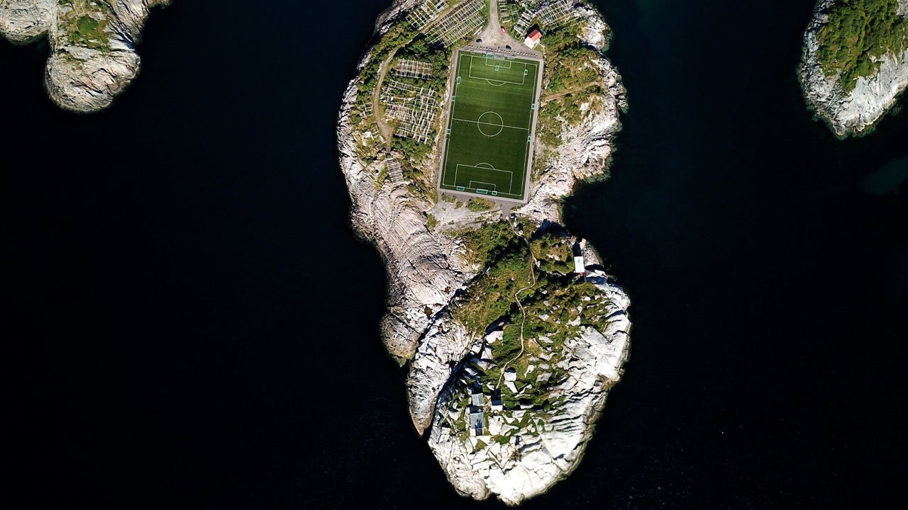 For photographers and lovers of aerial photography, Henningsvaer is a must! Not just because of the spectacular soccer field at the last tip of the island but also for its dramatic roads, bridges and steep mountains. As soon as you leave the highway (E10) in the direction to Henningsvaer, you will understand what I meant.
