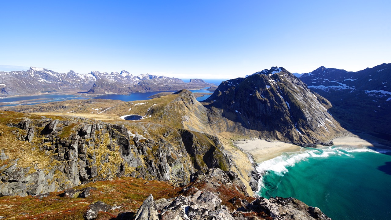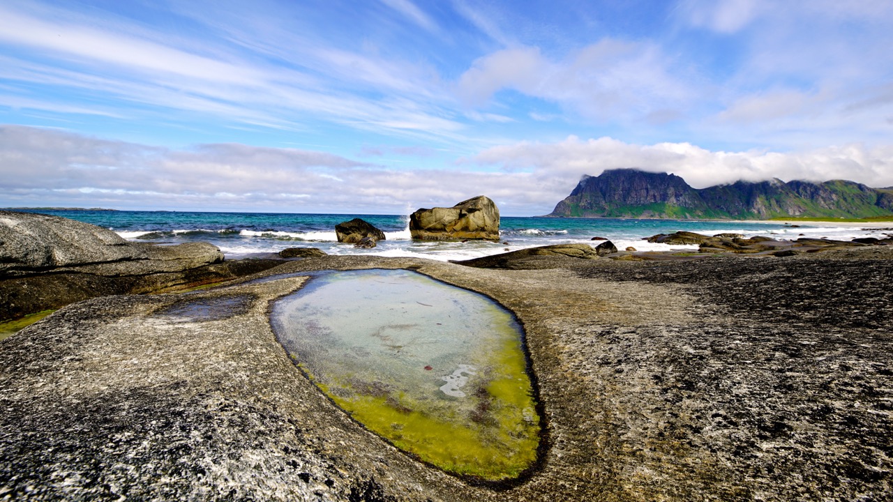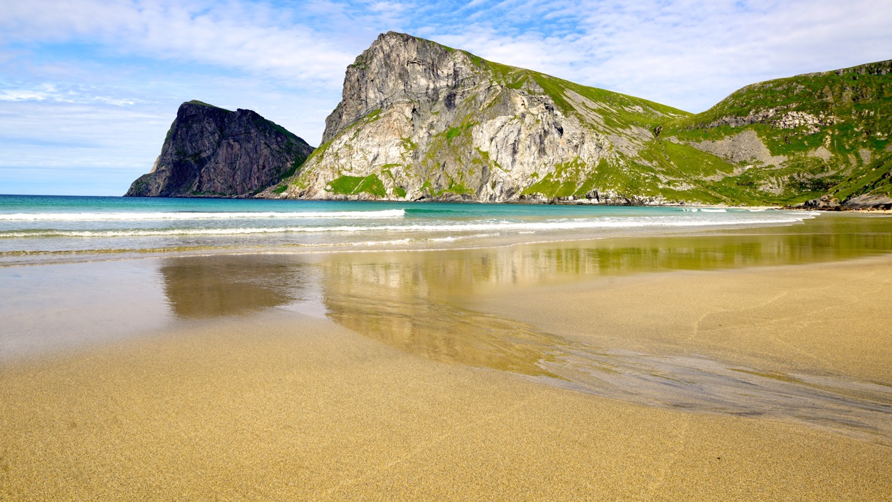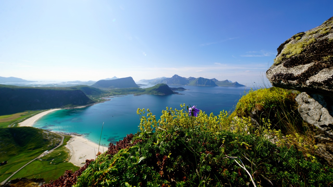 The small airport LKE is approached via Bodo from Oslo, and I can only recommend to every visitor to arrange a rental car upon arriving because no matter what your expectations for your trip are, without individual mobility, it will be a demanding challenge. Just a twenty-minute drive, the area around Haukland & Uttakleiv Beach is ideal for hiking, photography, camping and to enjoy the Caribbean flair of the North.
