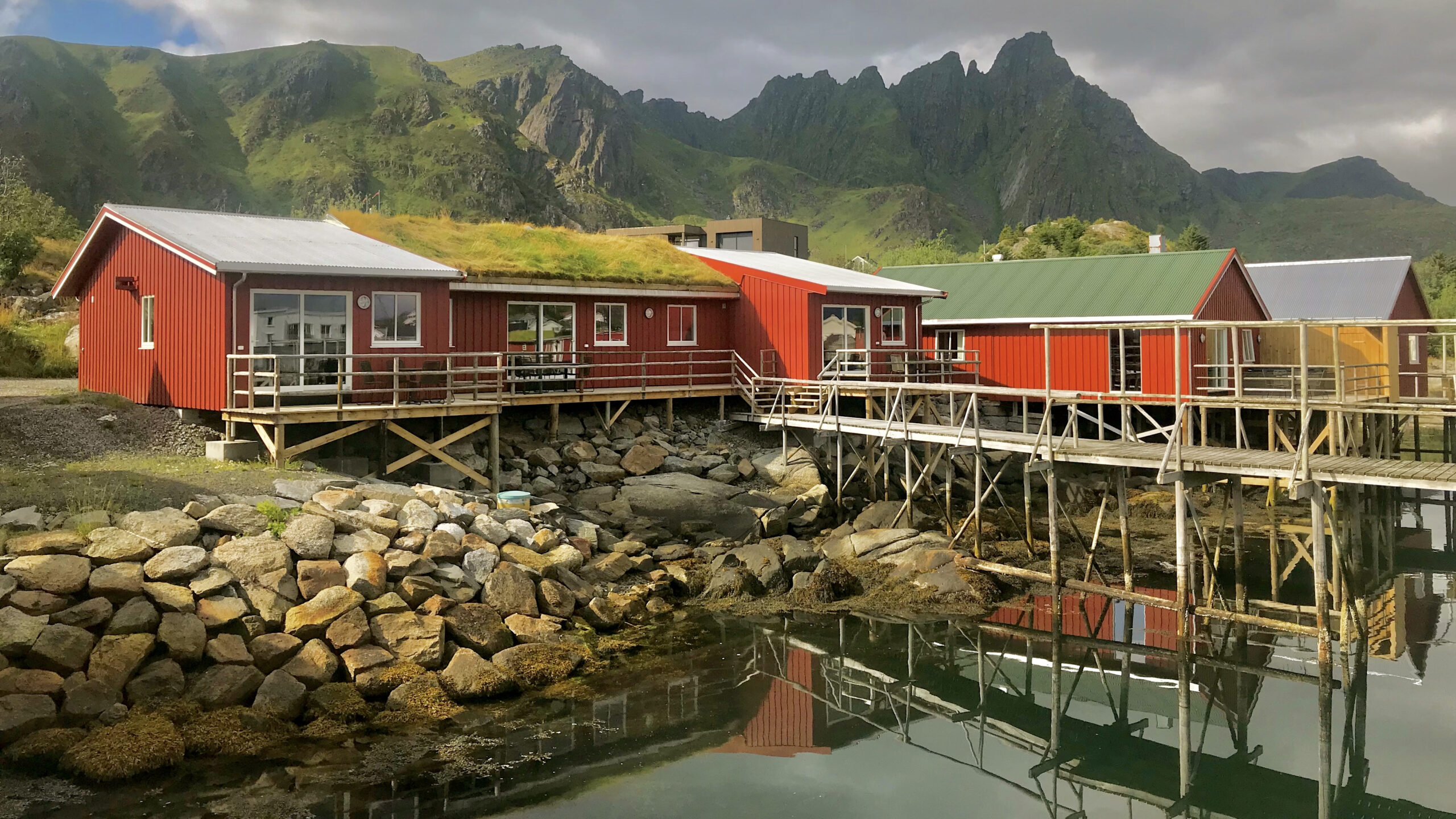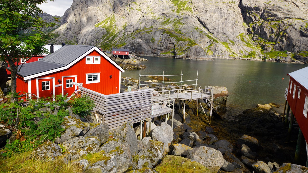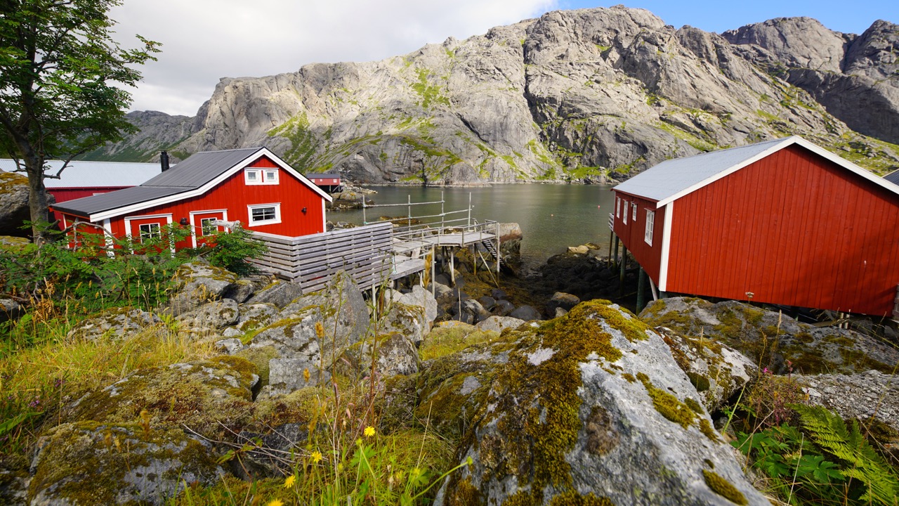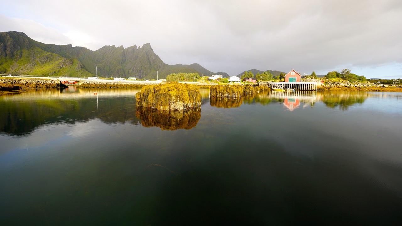 Enclosed a short geographic prologue. Lofoten is a Norwegian region in the administrative district Nordland and part of an archipelago off the coast of northern Norway, consisting of about 80 islands, including Austvågøya, Skrova, Gimsøy, Vestvågøy, Flakstadøy, Moskenesøy, Værøy and Røst. The Norwegian district of Lofoten essentially comprises the archipelago. The name means “the lynx foot”. Many times the settings of houses or Rorbu look really tacky and in perfect weather condition even surreal. But as you can see at the pictures, there is no chance of hiding a house, and instead of camouflage into the terrain, the signalise with the colour red.