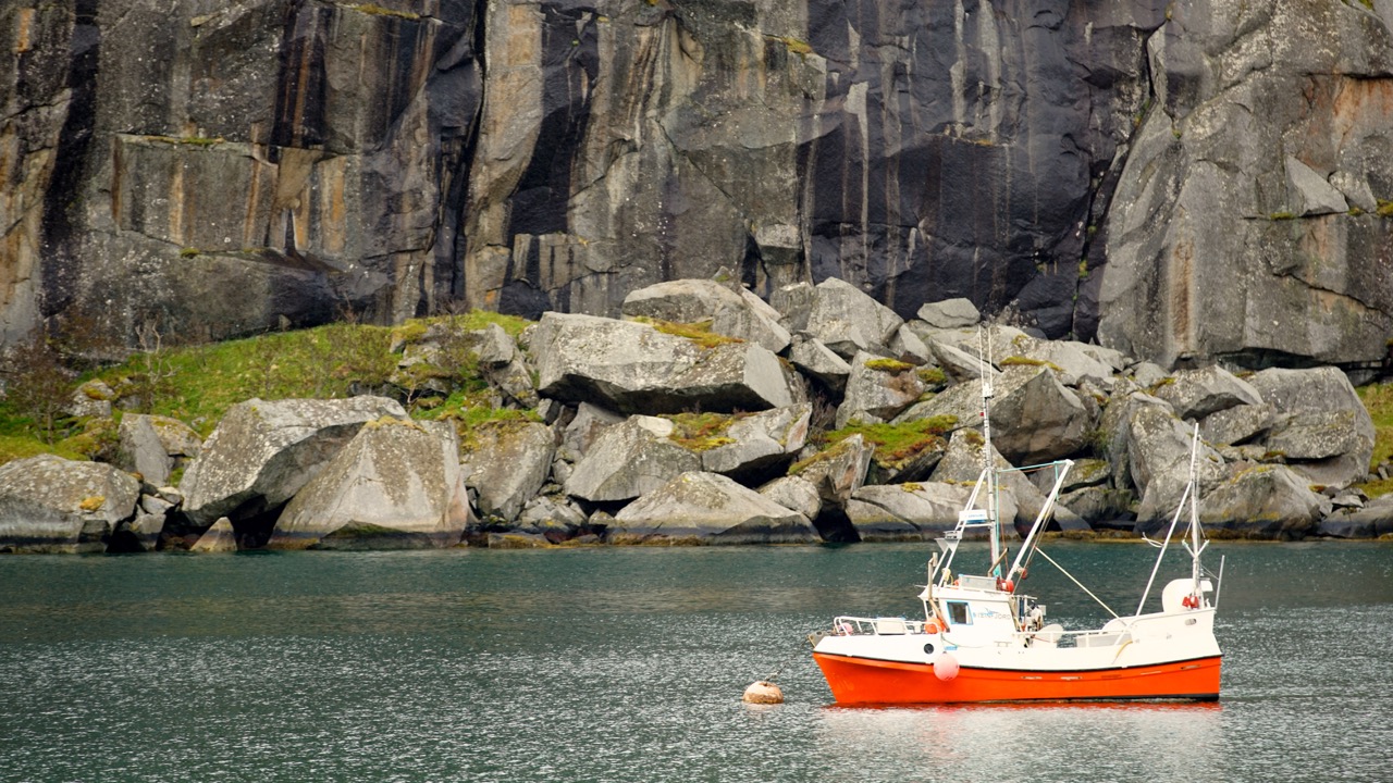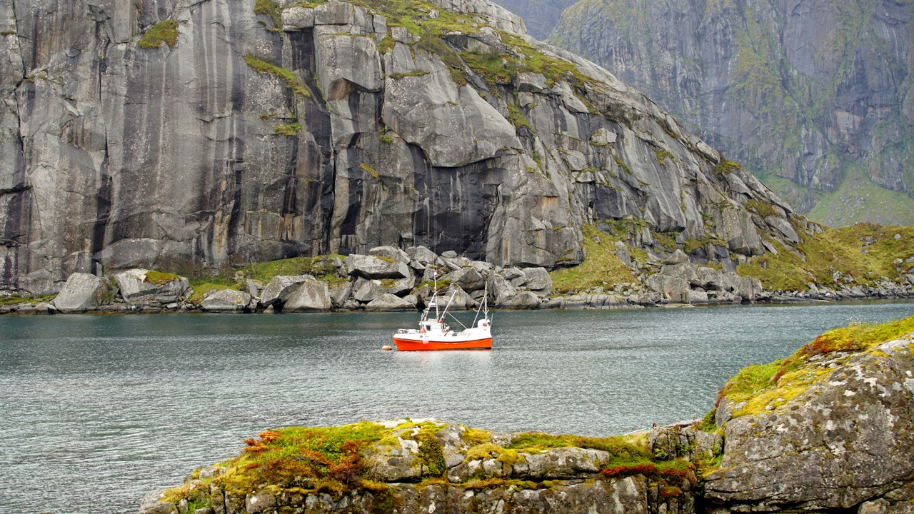 As so often, the job demands exceeded the description! Days and nights, weeks and months, merged into a great mix of adventure and day to day business. For the first picture of this blog post, a distinctive, typically Scandinavian picture because the colour red, as seen here with the traditional Rorbu is as profoundly anchored in the Norwegian culture as there fishing nets in front of the rugged islands.