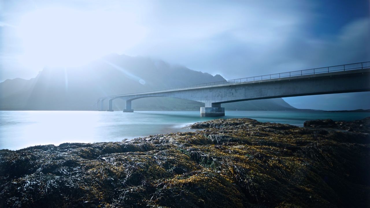 On certain days, when light conditions, clouds, colours and a view other factors are in symbiosis, the impressions are surreal, breathtaking, and leave me with no different expression than joy. Mischievous I am shaking my head with a broad grin. I not only look through the viewfinder of my camera to take a picture, but I am also looking through it to see the world and share fragments of wonders and beauty. Nourished and amazed I set off again for the southwest, and after just a few kilometres I was greeted by the 839 meters long and spectacular cantilevered Gimsøystraumen bridge that connects the islands of Austvågøya and Gimsøya