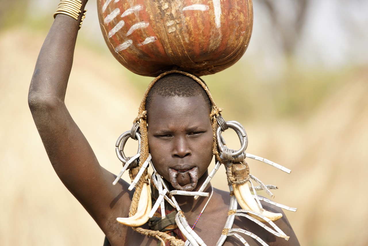 Like other forms of body decoration and alteration found the world over (like ear piercing, tattooing etc.), the lip plate worn by Mursi women is best seen as an expression of social adulthood and reproductive potential. It is a kind of ‘bridge’ between the individual and society – between the biological ‘self’ and the social ‘self’.