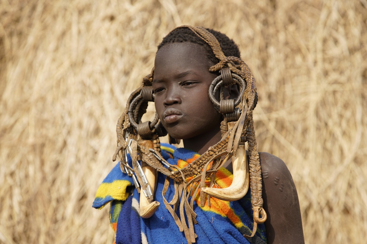 The Mursi tribe are an African tribe from the isolated Omo Valley in Southern Ethiopia near the border with Sudan. There are an estimated 10,000 members of this beautiful, sedentary tribe, whose lip plated faceplate decorations are a source of endless fascination. Long may they, and their wonderful culture live on.