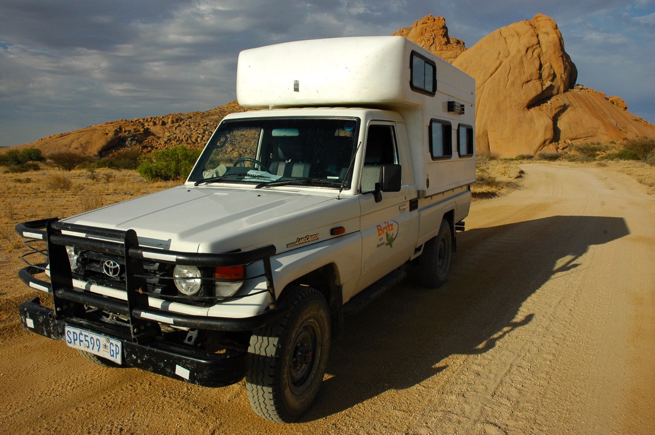 Naturally, the desert trip I had dreamed of involved utmost independence, for which purpose I rented a Toyota Land Cruiser from, Britz’ rent a car. Designed for four people, it was luxurious for the two of us. Having stowed our water tanks and four replacement tires as well as checked air pressure, emergency fuel tank, maps, how to change the tires and where to call in an emergency, we set off due North.