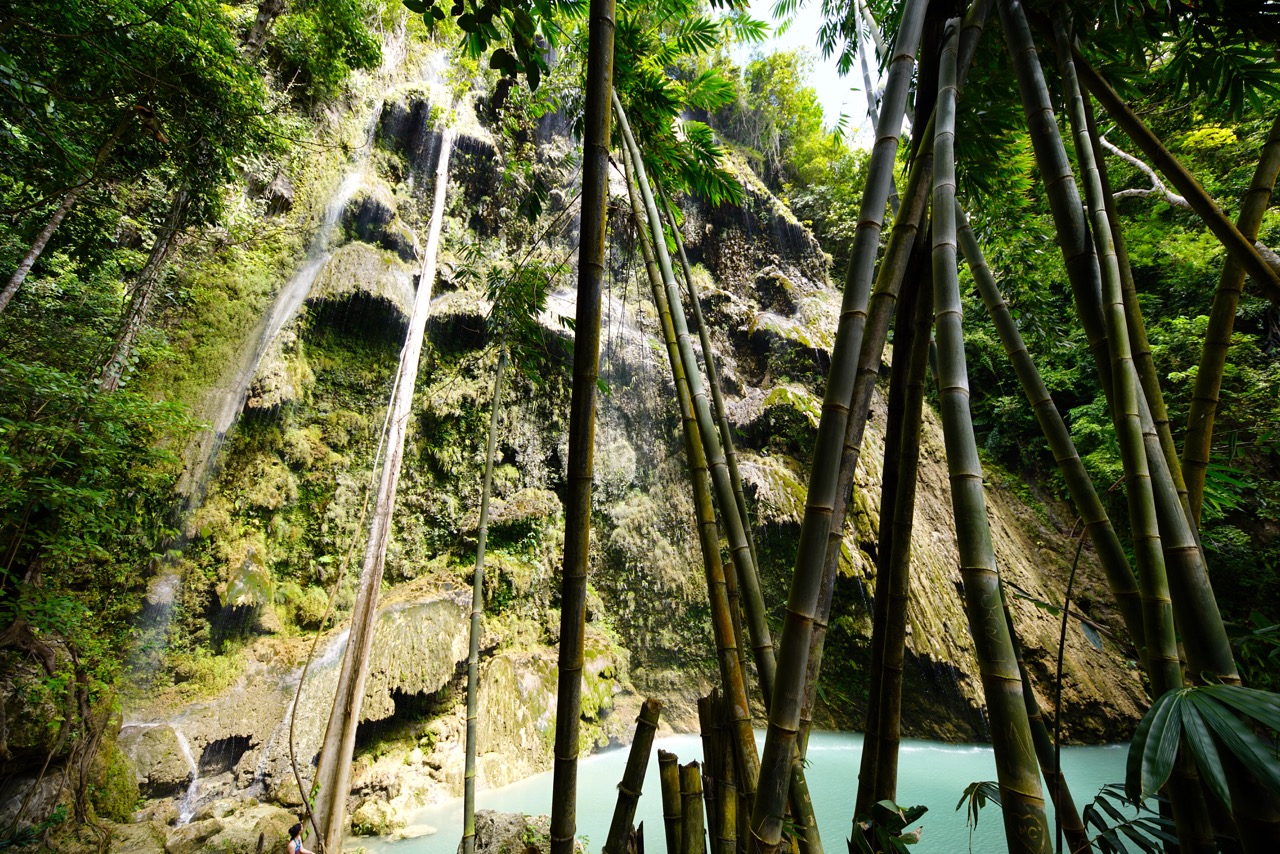 Just 4 km from the center of Oslob the spectacular Tumalog Falls can be found. Surrounded by lush green hills the falls are easy to reach via a paved road and the sight, as well as the swimming, is guaranteed refreshing. The only annoying thing is that many visitors are too lazy to walk for 5 minutes down to the falls and so the hire a guide (which are hanging around there the whole day) to drive them down with a motorbike. A ride which takes about 40 seconds. What a joke! The constant deafening noise of the motorbikes kills the whole atmosphere and beauty of this (once) pristine place.