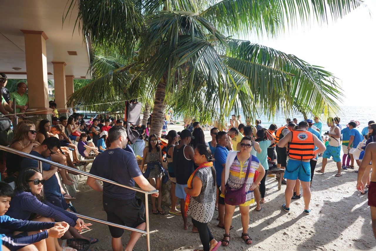 Seeing whale sharks will be remembered a lifetime and the encounter sticks to you like a sweet kiss. You feel blessed. I did see whale sharks several times before when I was diving in Belize but on this trip, I knew that there are in OSLOB, a small village southwest of Cebu -Philippines. In Oslob, they started 2008 to chum for the whale sharks for commercial use and since 2011 the business with whale shark snorkeling and whale shark diving is booming in such way that they have real troubles controlling it. The needed infrastructure is of course way behind even the make MILLIONS there, NO PESOS…… EURO !!! Depending on the weather, but actually more on the season, you can find there up to 1500 tourist per day! Most of the tourists are coming by buses and this is organized tours which bring ‘shiploads’ of South Korean, Japanese and Chinese costumes to the scene.