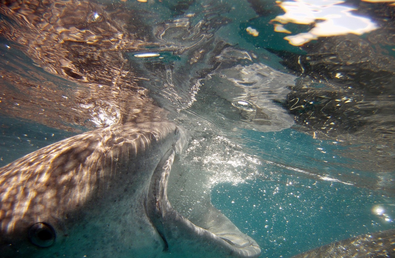 To use a snorkel you have to widely open your mouth but even that will drop out again by your first encounter with a whale shark. With my eyes and mouth wide open (which immediately fills with salt water) I freeze at the moment. Freeze… because of the whale shark encounter. The whale shark, the biggest fish on earth, which glides majestically and soundless in his elegance next to me. Amazement pure. All thoughts have vanished thanks to the evolution and so I drift in this oceanic silence, subjected to my biological system. Here and now, deep and blue. There is nothing to do so I observe the moment of being engrossed by its dimension and with the increasing amazement, the ego shrinks. How can you measure such experience which leaves you breathless in its unique encounter? You can’t.