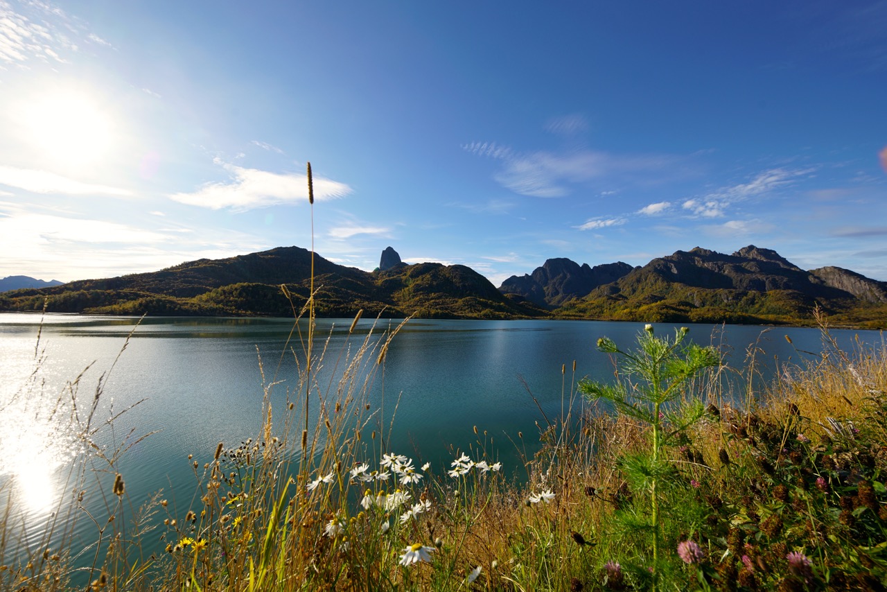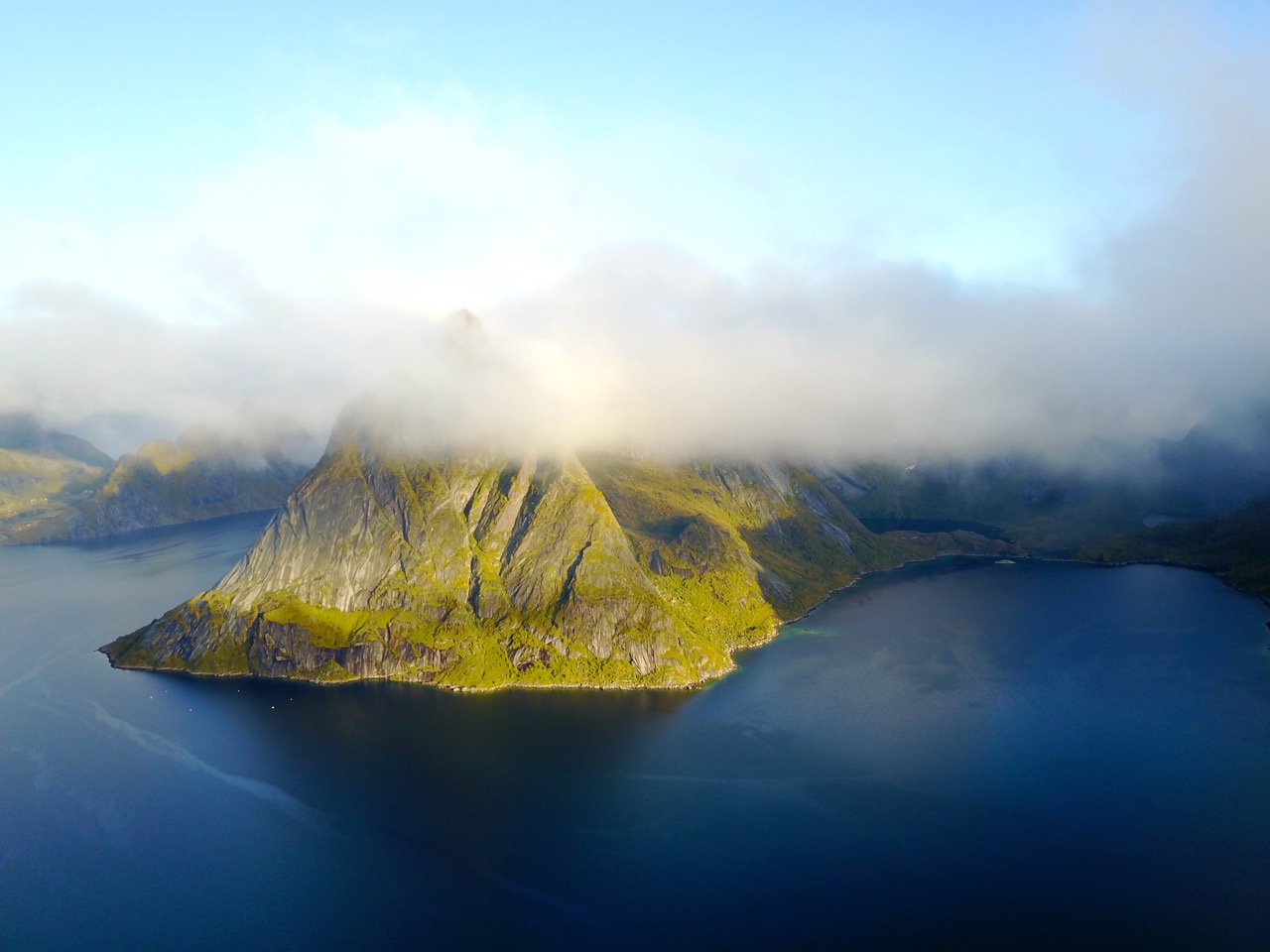 My astonishment regarding the unbelievable and excellent weather conditions we had during our entire journey moved me so much that I always felt at home at Lofoten. Christiane’s flight was one day earlier as mine, so after taking her to the airport, I used the time to explore the fjords west of Evenes. It was sunny and hardly any wind, which means perfect conditions to look for a spot where I could start the drone. Close to Kjerstad, I found the right spot from where I took the following pictures, as well as the drone video.