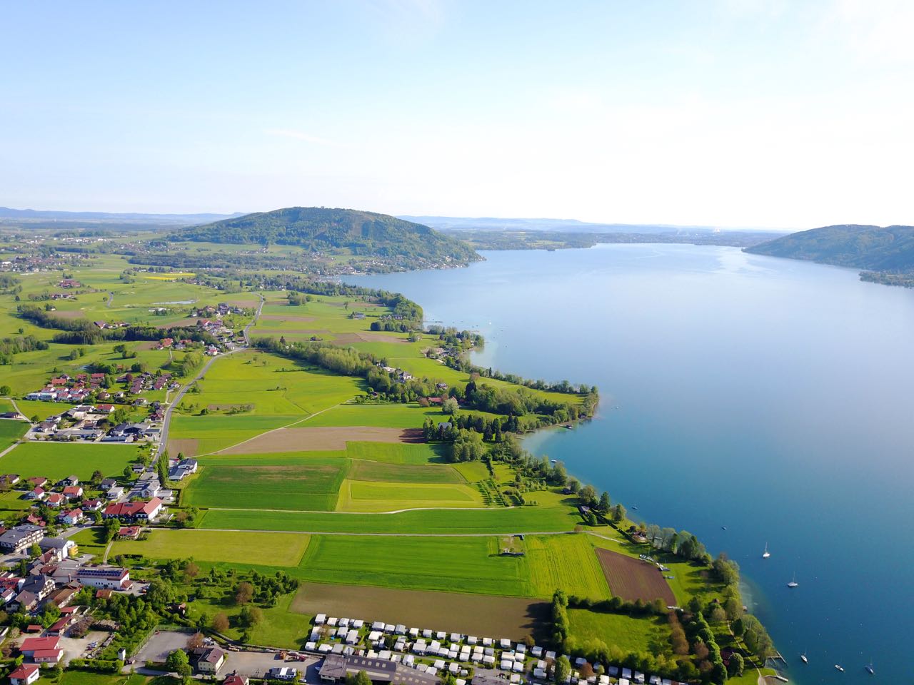 The left picture with a view to Attersee am Attersee and the right picture facing towards Unterach am Attersee show you fragments of the natural beauty of the region. Both pictures are taken with my drone, about 300 meters above the ground. The bigger picture below shows the (wedding) hotel & location ‘Das Grafengut’ as well as the campgrounds GRUBER and GRAUS, taken right at the pier and from 500 meters above.