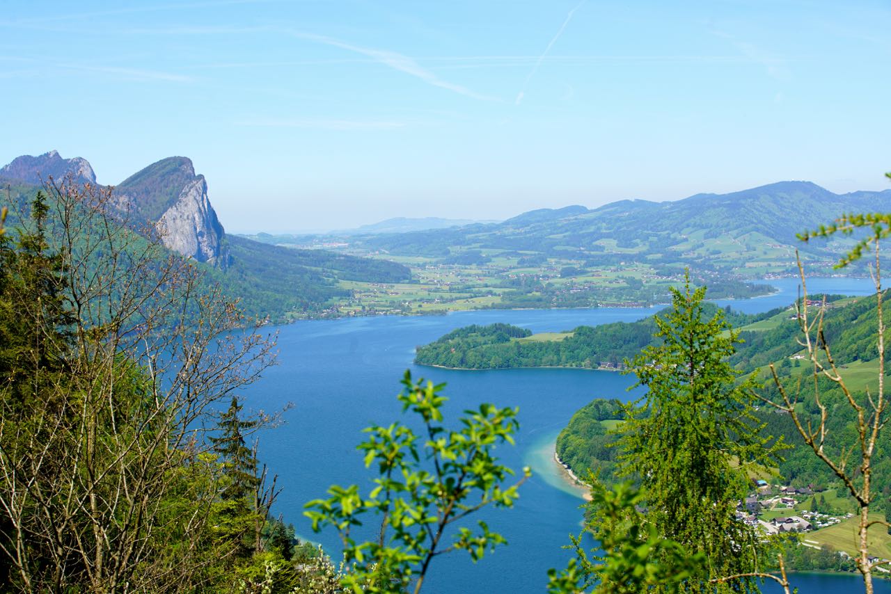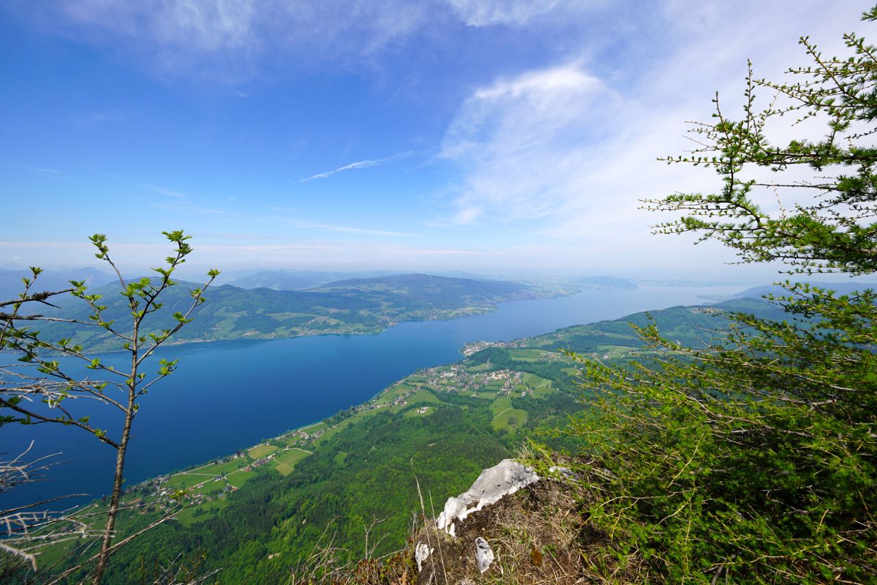 I guess it does not surprise you if you finally get a recommendation (from a trail runner) for an alpine hut which offers fantastic scenery besides quality food in the same manner. My favorite hut, the Buchberghütte (Bergfex Link, Eisenau – Schafberg), which I took to my heart is exceptional. Before we get into details about the Buchberghütte, I will depict how to get there, starting in Mühlleiten – Unterach. After approximately one hour of hiking, you have this amazing view, Mondsee on your left and Attersee on the right.