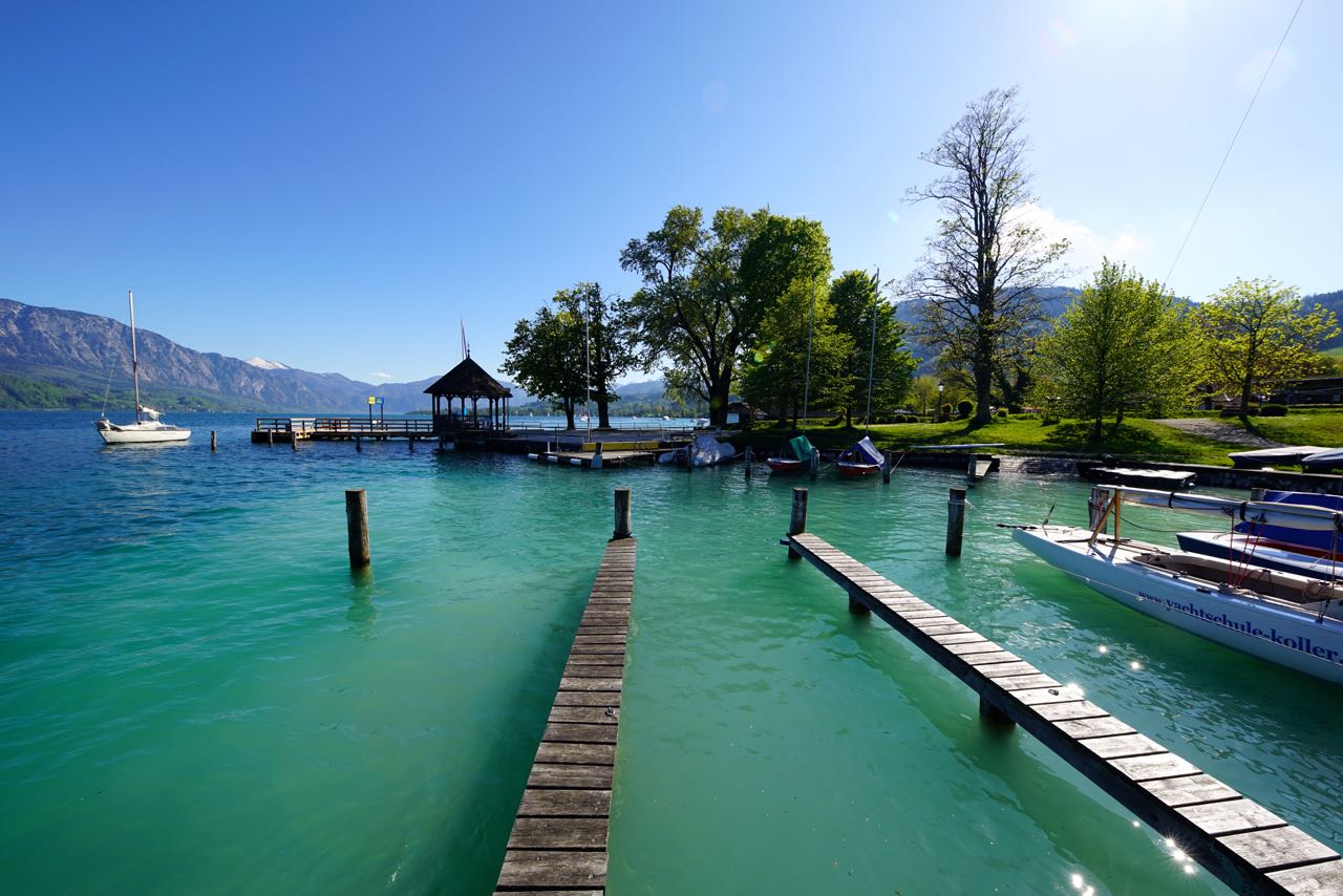 We are back at the lake and welcome on board of ‘Attersee – Schifffahrt’. In the years of 1869/70 Graf Khevenhüller-Frankenburg established the first concessionary Attersee – Steamboat Company. The ambitious company ‘Stern & Haferl’ started as early as 1913 to operate the Attersee Schifffahrt by using an electric drive to power their ships! My most favorite spot to board a ship is in the beautiful tiny village of Unterach. This village still spreads out some of the old charm and atmosphere and has, as the only village around the lake, a bypass. The village of Unterach, which was called little Venice in the last century, lies on the southern end of Attersee and until today beguiles its guests through the old villas which were built during the glory days at the turn of the century. Let me invite you now to Unterach am Attersee…