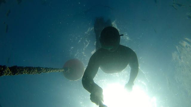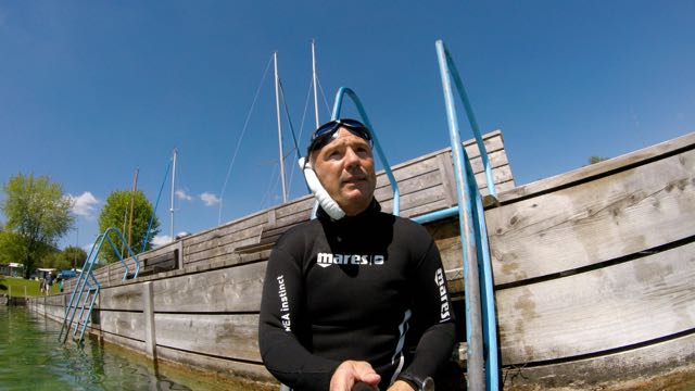 I myself am diving over 20 years now and I did take my first Apnea (free-diving) course about 15 years ago in Thailand: Apnea – Freediving. So it was about time for me to update my skills, especially in terms of safety and technique and so I signed up for a course at Attersee in July, which was held by the multiple world record holders Christian Redl. Enclosed you will find some pictures, a video from the underwater playground and a link with further descriptions about Apnea / free-diving. Apnea is the technique of diving with your own tidal air. Apnea divers are inhaling before they dive and with the amount of ‘air supply’ (from one last deep breath), they have to manage the dive. The period between inhaling and exhaling is called ‘Apnoe’ (temporary suspension of breathing).